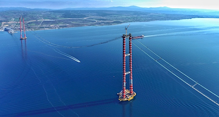 Türkiye’nin batısında otoyol entegrasyonunu tamamlayacak ve İstanbul Boğazı geçişine yeni bir alternatif oluşturacak projede, ana halatları oluşturacak çelik kablolarda, dünyanın etrafını 4 kez dolaşmaya yetecek toplamda 162 bin kilometre uzunluğunda tel kullanılacak.