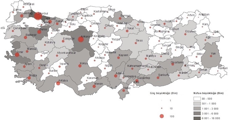 En çok göç alan iller olan İstanbul, Ankara ve İzmir'in aynı zamanda en çok göç veren iller olduğu görüldü.