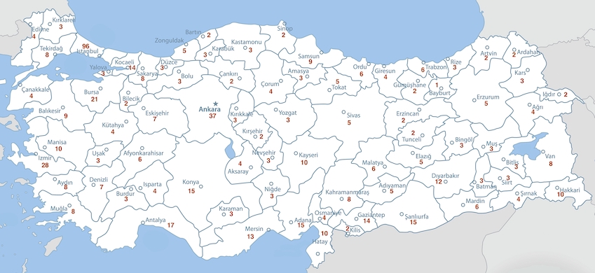 | Düzce | 3 | GENEL TOPLAM | 600 |