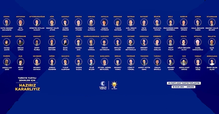 AK Parti'nin 17 büyükşehir ve 31 il belediyesi olmak üzere toplam 48 ildeki belediye başkan adayları açıklandı.