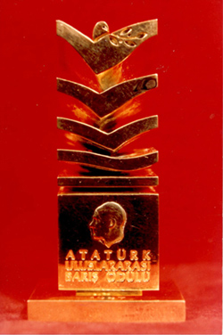 Atatürk rölyefi işlenmiş bir plaket, rozeti, berat ve para ödülünden oluşan ödüle 1986 yılında Eski NATO Genel Sekreteri Joseph Luns, 1987'de Federal Almanya Cumhurbaşkanı Richard Von Weizsaecker, 1989'da Japon Prensi Takahiko Mikasa, 1990'da 7. Cumhurbaşkanı Kenan Evren, 1992'de Nelson Mandela, 1995'te Türkiye Kızılay Derneği, 1996'da UNICEF, 1997'de Bosna-Hersek Türk Barış Gücü Görev Kuvveti, 1998'de Prof. Dr Bernard Lewis, 1999'da Azerbaycan Cumhurbaşkanı Haydar Aliyev ve 2000 yılında KKTC Cumhurbaşkanı Rauf Denktaş layık görüldü.