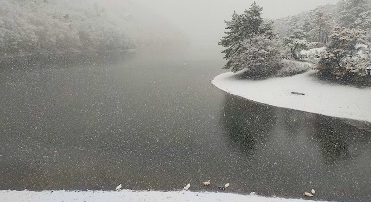 Bugün öğleden sonra başlayan kar yağışı, Tabiat Parkı'nda kartpostal güzelliği oluşturdu. Beyaza bürünen göl ve doğa vatandaşlar tarafından ilgiyle izlenirken, fotoğrafseverler için de malzeme oluşturdu.