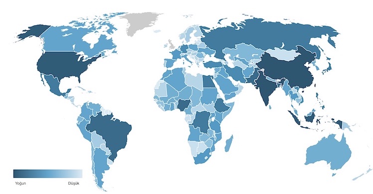En kalabalık ülke Hindistan, Türkiye 18. sırada