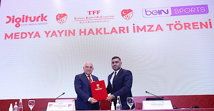 Türkiye Futbol Federasyonu Başkanı Mehmet Büyükekşi ile Digiturk ve beIN Media Group CEO'su Yousef Al-Obaidly'nin katılımıyla gerçekleştirilen imza töreni, Riva'daki TFF Hasan Doğan Milli Takımlar Kamp ve Eğitim Tesisleri Orhan Saka Konferans Salonu'nda yapıldı.