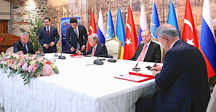 Türkiye ve Birleşmiş Milletlerin çabalarıyla Rusya ile Ukrayna arasında varılan Tahıl Sevkiyatı Anlaşması İstanbul’da imzalandı.