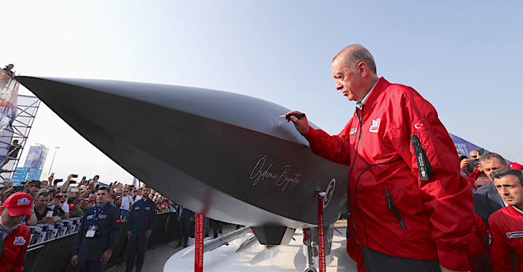 Türkiye'nin artık kendi İHA'larını üreten bir ülke haline geldiğini belirten Erdoğan, "Samsun'da ilk defa sizlerin takdirine sunulan Kızılelma insansız savaş uçağımız dünya harp tarihinde oyun değiştirici hamle olarak görülmektedir" dedi.