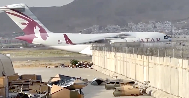 Sosyal medyada dolaşan bir video, 31 Ağustos'ta asker çekme işleminin tamamlanmasının ardından tesise gelen ilk uçak olan Qatar Airways uçağının Kabil havaalanına iniş anlarını gösterdi.