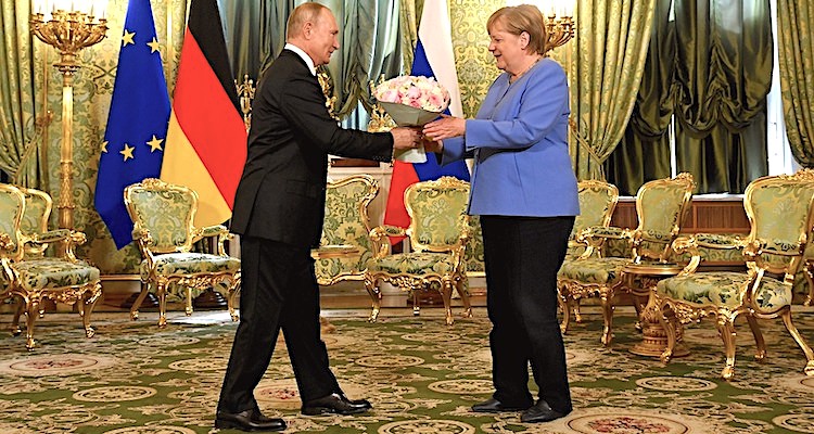 Merkel, Almanya'nın lideri olarak geçirdiği 16 yılda Putin ile 30 defadan fazla bir araya geldi ve Avrupa'daki diğer birçok ülkenin Putin'in artık makul olamayacağına inanmasına rağmen, Rusya ile diyaloğu sürdürmek için sesli olarak lobi yaptı.