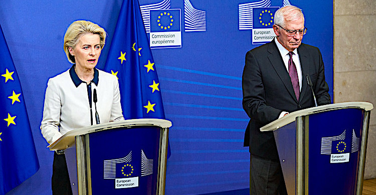 Avrupa Komisyonu Başkanı Ursula von der Leyen, AB Dış İlişkiler Yüksek Temsilcisi Josep Borrell ile düzenlediği basın toplantısında, "Zelenskiy'in liderliği, cesareti ve Ukrayna halkının direnci hepimiz için bir ilham kaynağı" oldu dedi.