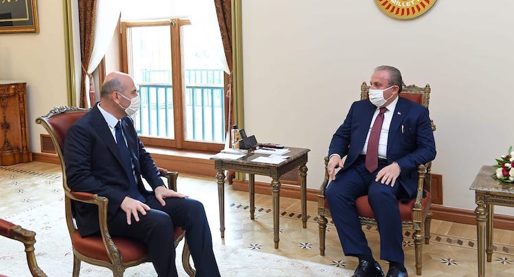Soylu, öğle saatlerinde TBMM'ye gelerek Şentop’u makamında ziyaret etti. Önceden basına haber verilmeyen ziyaret yaklaşık 1.5 saat sürdü.