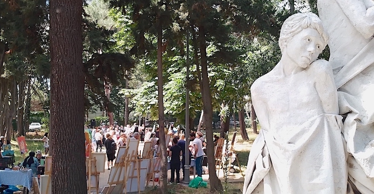 Asırlık ağaçlar: Himalaya sediri, Arizona servisi, sessizliğin bekçileri gibi tüm heybetleriyle yemyeşil dallarını mavi göğe sunuyorlar. İri yapraklı otlarla bezeli bahçenin girişinde küçük bir süs havuzunun ortasında bir heykel grubu yükseliyor; adı "Umuda Dokunuş."