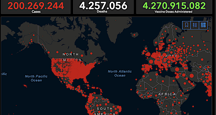 Dünyadaki koronavirüs vakaları, Almanya, Fransa ve İspanya nüfuslarının toplamını geçen ürkütücü bir rakama ulaşarak 200 milyonu aştı.