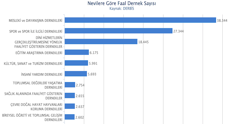 Toplumsal dereleri yaşatma dernekleri: 2.754 (Yüzde 2,2)