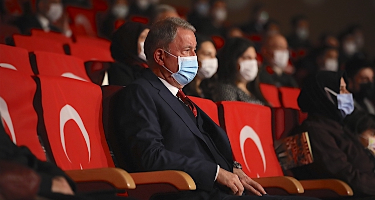 Akar, Şehitleri Anma Günü ve Çanakkale Deniz Zaferi'nin 106’ncı yıl dönümü dolayısıyla bakanlıkta düzenlenen törene katıldı. Törende, şehit ailelerinin yanı sıra Türk Silahlı Kuvvetlerinin komuta kademesi ve askeri personel de yer aldı.