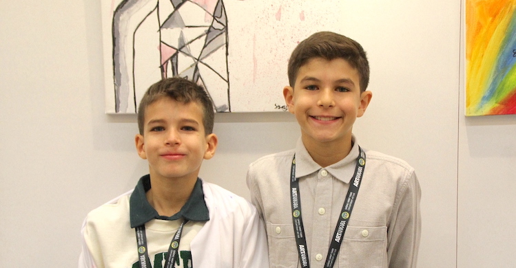 ArtAnkara'nın en genç sanatçıları resim çalışmalarını beğeniye sunan 10 yaşındaki Rauf ve 8 yaşındaki Sinan Yaykıran kardeşler.