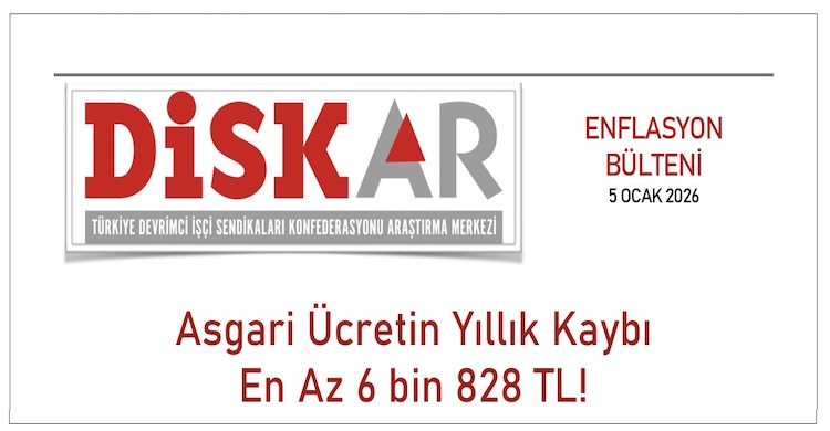 DİSK-AR'ın hesaplamalarına göre, 2025 yılında asgari ücretin enflasyon karşısındaki kaybı 6 bin 828 lira oldu.