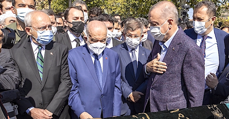 TBMM Başkanı Mustafa Şentop, Cumhurbaşkanı Yardımcısı Fuat Oktay, CHP Genel Başkanı Kemal Kılıçdaroğlu, MHP Genel Başkanı Devlet Bahçeli, BBP Genel Başkanı Mustafa Destici, Saadet Partisi Genel Başkanı Temel Karamollaoğlu, DEVA Partisi Genel Başkanı Ali Babacan, Gelecek Partisi Genel Başkanı Ahmet Davutoğlu, DSP Genel Başkanı Önder Aksakal, AK Parti Genel Başkanvekili Numan Kurtulmuş, Saadet Partisi YİK üyesi Recai Kutan.