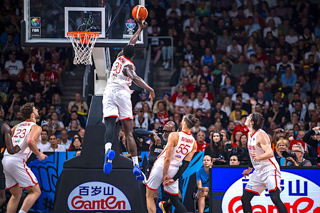 Almanya, üçüncü çeyreğin bitimine doğru, üst üste bulduğu sayılarla skoru 63-65'e getirdi. Milliler Nijerya kökenli Adem Bona'nın bulduğu sayıyla yeniden eşitliği yakaladı. Çeyrek, millilerin 67-66'lık üstünlüğüyle sona erdi.