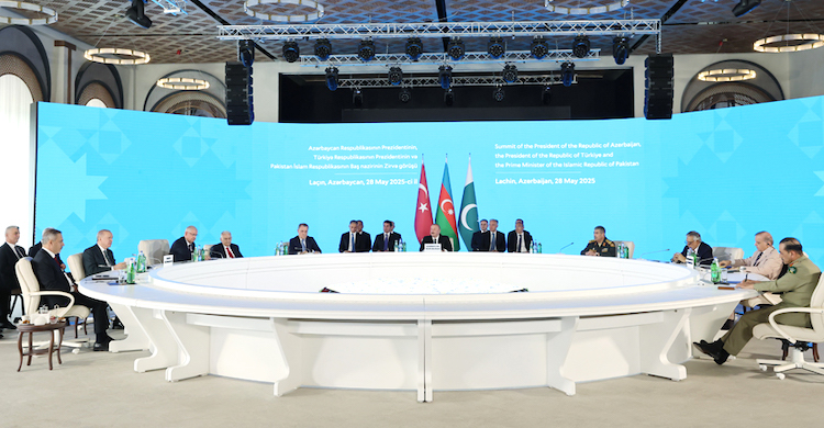 Cumhurbaşkanı Recep Tayyip Erdoğan, Azerbaycan Cumhurbaşkanı İlham Aliyev ve Pakistan Başbakanı Şahbaz Şerif, Azerbaycan’ın Laçın kentinde düzenlenen Türkiye-Azerbaycan-Pakistan Üçlü Zirvesi'nde bir araya geldi.