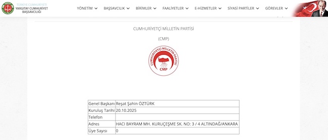 Yargıtay Cumhuriyet Başsavcılığı kayıtlarıda şu anda Cumhuriyetçi Milletin Partisi adıyla bir siyasi partı yer alıyor.