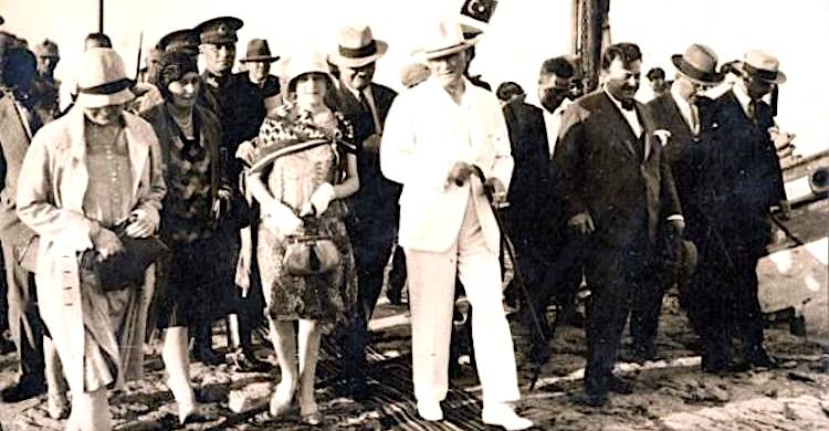 “Sabah anıt önünde, Gazi'nin büstünü taşıyan bir motor önde olduğu hâlde, birçok donanmış ve hıncahınç insan dolu motorlar açıktan hareketle, havai fişekleri, top ve bando sesleri ve alkışlar ortasında Gazi iskelesine doğru gelirler. Burada karayı çıkılır ve bekleşen on binlerce insanla birlikte, iskeleye gerilmiş siyah perde yırtılır, nutuklar irad edilir ve önde büst olmak üzere, evvela heykelin önünde İstiklal Marşı ile durulur, çelenkler konur, sonra belediye, parti (CHP) ve halkevine gidilir, nutuklar dinlenir; gece de karada ve denizde şenlikler, fener alayları yapılır. Belediye salonunda da (Şükran Balosu) verilirdi.”