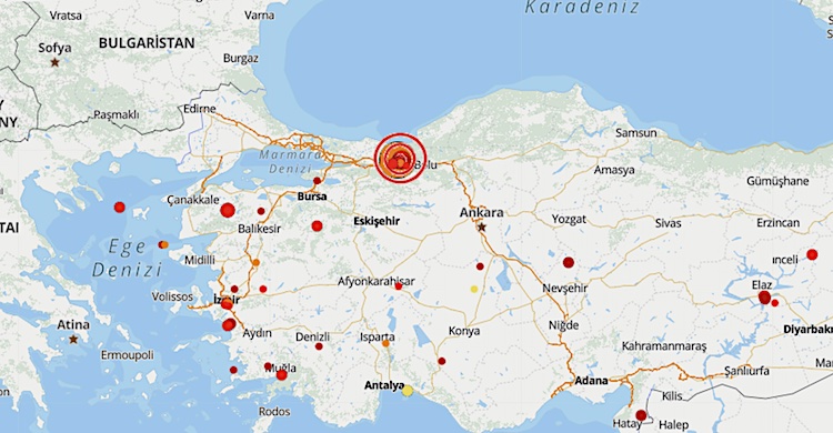 Düzce'de saat 04.08’de meydana gelen 5,9 büyüklüğündeki depremin ardından yirmiye yakın artçı sarsıntı kaydedildi. Deprem, çevre illerde de hissedildi.