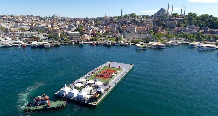 İstanbul Büyükşehir Belediyesi (İBB), 19 Mayıs Atatürk'ü Anma, Gençlik ve Spor Bayramı kutlamaları kapsamında, Haliç üzerinde konumlandırılan platformu, tenis kortu olarak düzenledi.