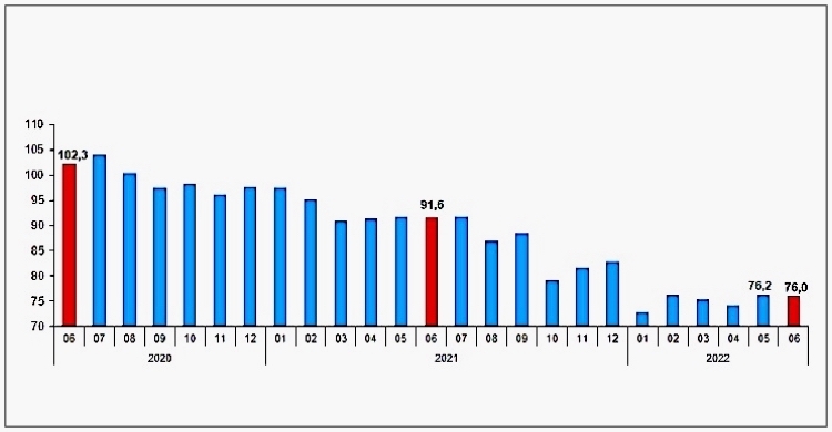 Dış ticaret haddi 2022 yılı Haziran ayında 76,0 olarak gerçekleşti.