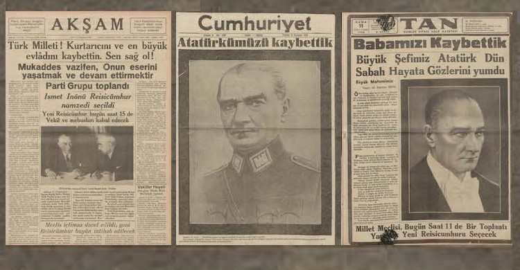 Türkiye Cumhuriyeti'nin kurucusu Mustafa Kemal Atatürk, 10 Kasım 1938'de hayata gözlerini yumdu. 11 Kasım 1938 tarihli gazetelerin manşetlerindeki ana unsur hüzün, Cumhuriyet'i ve O'nun eserlerini yaşatma sözüydü.