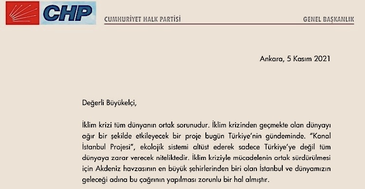 Kılıçdaroğlu’ndan tüm büyükelçilere “Kanal İstanbul” mektubu