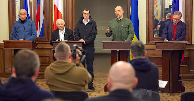 Polonya Başbakanı Mateusz Morawiecki, Slovenya Başbakanı Janez Jansa ve Çekya Başbakanı Petr Fiala iktidar partilerinin başkanlarıyla riskli bir yolculuk kararı aldılar. Grup, dün akşam saatlerinde trenlerle Varşova'dan Kiev'e gitti.