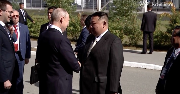 Kremlin'in resmi hesabından yayınlanan videoda, Kim'in Kuzey Kore'den ülkeye gelişinden bir gün sonra Rusya'nın uzak doğusundaki Amur bölgesindeki Vostochny Cosmodrome uzay üssüne vardığında iki liderin gülümseyerek ve el sıkıştığı görülüyor.