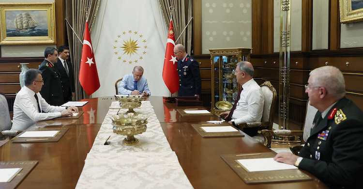 Buna göre, 2021 yılı Yüksek Askeri Şura olağan toplantısında, Türk Silahlı Kuvvetlerinde görevli general/amiral ve albaylardan bir üst rütbeye yükseltilecekler, görev süresi uzatılacaklar, kadrosuzluktan emekliye sevk edileceklerin durumları görüşülerek, Cumhurbaşkanı Erdoğan’ın onayı ile karara bağlandı.