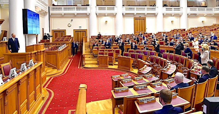 Rusya Parlamentosu Federal Meclisi Yasa Yapıcılar Konseyinde konuşan Putin, Ukrayna topraklarından Rusya’ya yönelebilecek tehdide göndermede bulunarak, şunları söyledi: