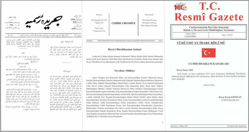 O zamanki adıyla ‘’Ceride-i Resmiye’’nin haftalık olarak yayımlanmaya başladığı 7 Şubat 1921 tarihli ilk sayısında 1. sayıda, Londra konferansına gidecek heyet, bazı yerel yöneticilerin atama kararları, 1921 Anayasası, bazı kanun ve ilanlar yer alıyor.