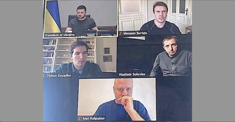 Zelenskiy, çevrimiçi görüşme şeklinde yapılan röportajda Medusa Genel Yayın Yönetmeni Ivan Kolpakov, Dozhd TV'nin Genel Yayın Yönetmeni Tikhon Dzyadko, Novaya Gazeta Genel Yayın Yönetmeni Dmitry Muratov, yazar ve gazeteci Mikhail Zigar, Kommersant Muhabiri Vladimir Solovyov'un sorularını yanıtladı.