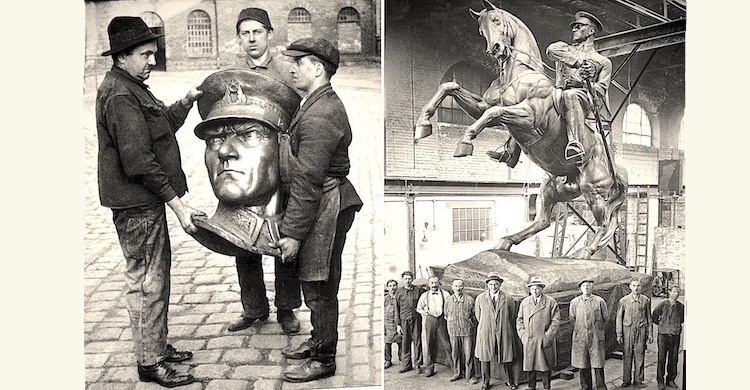 Viyana'daki Kriphel'in atölyesinde kalıpları çıkarılan anıtın bronz döküm işlemi Vereinigte Metallwerke dökümhanesinde yapılır. Sonraki aşamada temizlik ve rötuş işlemleri için dökümhanede birleştirilen anıt bu sürecin tamamlanmasından sonra yeniden sökülür ve her bir parçası ayrı ayrı sandıkları konulur. Söküm öncesi ve bazı parçalara ilişkin sadece birkaç fotoğraf bugünlere ulaşabildi.