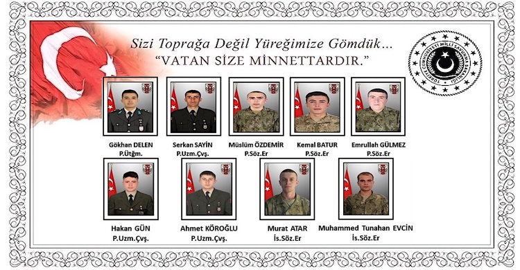 Şatışmada şehit düşen TSK mensupların adları şöyle: