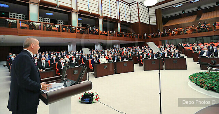 AK Parti Genel Başkanı ve Cumhurbaşkanı Recep Tayyip Erdoğan, TBMM'nin 27. Dönem 5. Yasama Yılı açılışında konuştu. Erdoğan'ın konuşması satırbaşlarıyla şöyle: