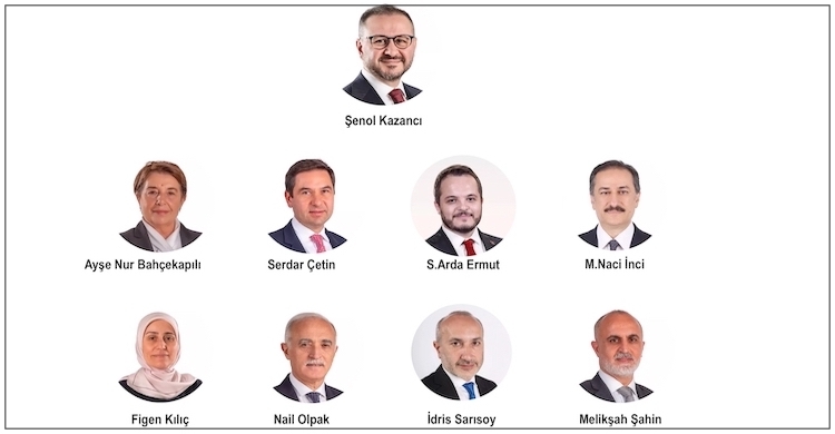 Yönetim Kurulu üyeleri: Ayşe Nur Bahçekapılı, Serdar Çetin, Salim Arda Ermut, Mehmet Naci İnci, Figen Kılıç, Nail Olpak, İdris Sarısoy ve Melikşah Şahin.