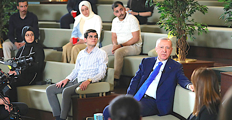 Erdoğan, 19 Mayıs Atatürk'ü Anma, Gençlik ve Spor Bayramı dolayısıyla Cumhurbaşkanlığı Millet Kütüphanesi'nde düzenlenen "Kütüphane Söyleşileri"nde bir grup gençle buluştu, sorularını yanıtladı.