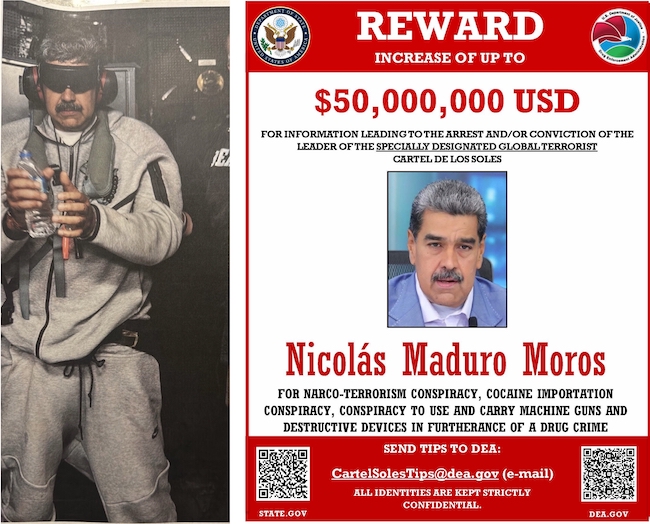 ABD Dışişleri Bakanlığı'nın internet siteside "aranan kişi" olarak yer alan Madura için 50 milyon dolar ödül konulmuştu.